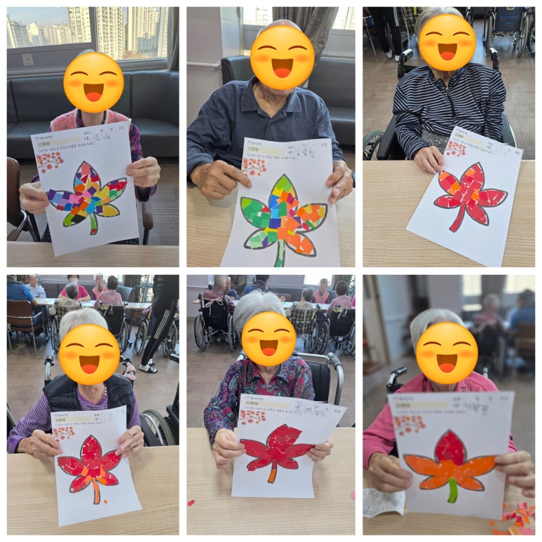 ♡ 인지미술활동-단풍잎 색종이 붙이기 관리자 2025-11-19 10:22 ♣ 단풍잎 색종이 붙이기플래티늄 유성 요양원 인지미술활동가을이 깊어가는 요즘, 플래티늄 유성 요양원에서는단풍잎 색종이 붙이기 인지미술활동을 진행하였습니다.다양한 색종이 색깔을 활용하여 손으로 직접 찢어단풍잎 도안에 붙여 완성하는 활동으로어르신들께서 무척 즐거워하시는 프로그램입니다.♣ 인지미술활동의 효과● 소근육 운동 강화색종이를 찢어 붙이는 과정에서자연스럽게 손가락 근육을 사용합니다.● 집중력 주의력 향상색과 모양을 선택하고 배치하는 과정이인지 자극에 도움이 됩니다.● 계절감 경험단풍잎을 표한하며 가을의 분위기를자연스럽게 느낄 수 있습니다.●정서 안정차분하게 작품을 완성해 가며안정감과 성취감을 느낄실 수 있습니다.♣ 어르신들의 반응어르신들께서는 색종이를 따뜻한 색감을 보며 "가을이 오니 예쁘다","옛날에 아이들과 같이 만들던 생각이 난다." 등 즐거운 이야기를나누셨습니다. 완성된 단풍잎 작품을 보며 만족스러워하시는 모습이매우 인상적이었습니다.♣ 마무리플래티늄 유성 요양원은 앞으로도 계절에 맞는 다양한 인지미술활동 프로그램을통해 어르신들의 즐거운 하루와 건강한 일상을 위해 최선을 다하겠습니다. 다음글 ♡ 인지미술활동 - 반가운 가을! 입체만들기 이전글 ♡ 2025년 11월 생신잔치 목록