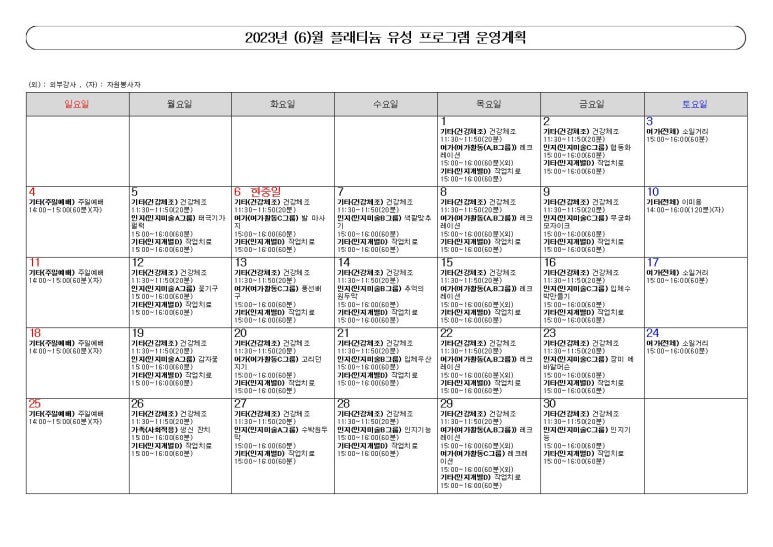 ♡ 2023년 6월 프로그램계획서 관리자 2025-04-15 13:45 ♡ 2023년 6월 프로그램계획서 다음글 ♡ 2023년 7월 프로그램계획서 이전글 2021년 06월 프로그램계획표 목록