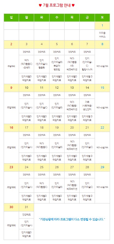 ♡ 2023년 7월 프로그램계획서 관리자 2025-04-15 13:45 ♡ 2023년 7월 프로그램계획서 다음글 ♡ 2023년 8월 프로그램계획서 이전글 ♡ 2023년 6월 프로그램계획서 목록