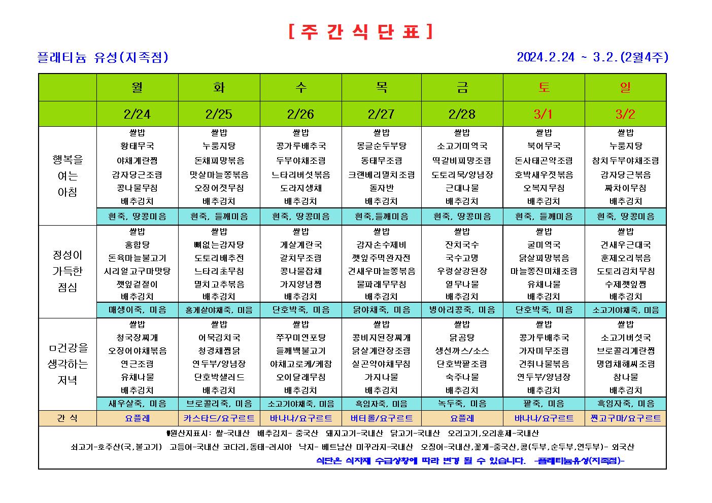 ♡ 2025년 2월 4주 식단안내 ( 2월 24일 ~ 3월 2일) 관리자 2025-04-18 14:10 ♡ 2025년 2월 4주 식단안내 ( 2월 24일 ~ 3월 2일) 다음글 ♡ 2025년 2월 가정통신문 이전글 ♡ 2025년 2월 3주 식단안내 ( 2월 17일 ~ 2월 23일) 목록