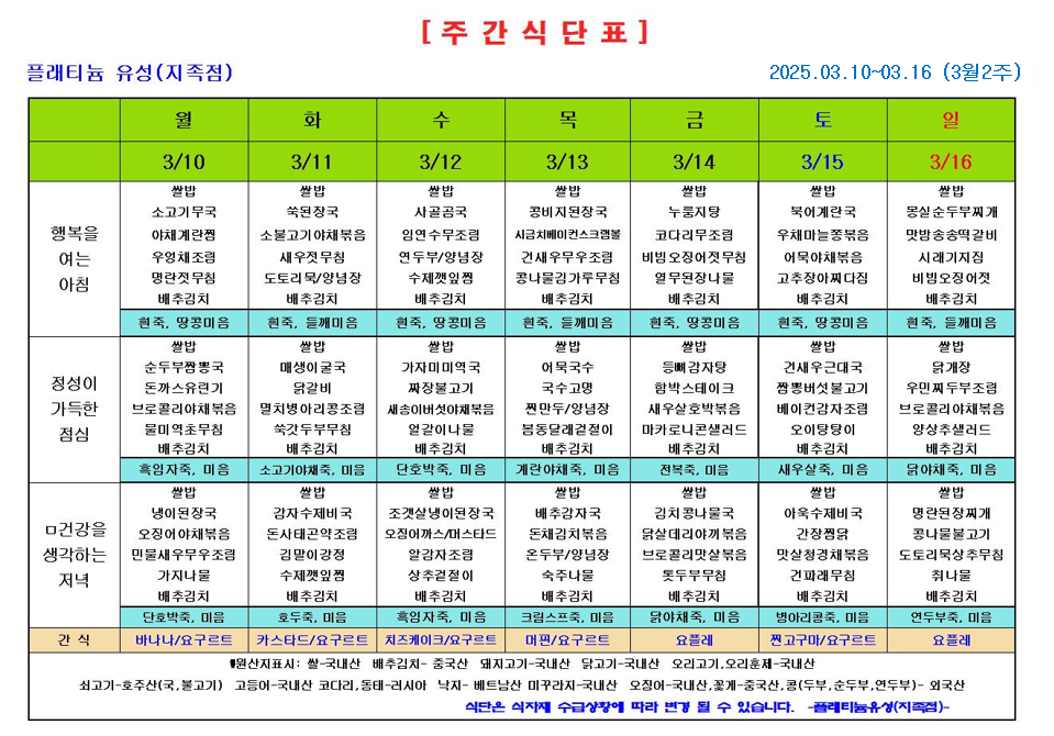 ♡ 2025년 3월 2주 식단안내(3월10일~3월16일) 관리자 2025-04-18 14:19 ♡ 2025년 3월 2주 식단안내(3월10일~3월16일) 다음글 ♡ 2025년 3월 3주 식단안내(3월17일~3월23일) 이전글 ♡ 2025년 3월 1주 식단안내(3월3일~3월9일) 목록