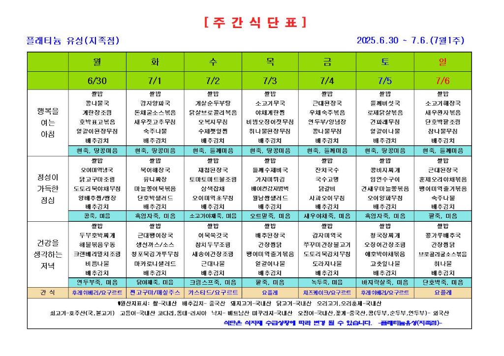 ♡ 2025년 7월 1주 식단안내(6월30일~7월1일) 관리자 2025-06-27 10:18 ♡ 2025년 7월 1주 식단안내(6월30일~7월1일) 다음글 ♡ 2025년 6월 가정통신문 이전글 ♡ 2025년 6월 4주 식단안내(6월23일~6월29일) 목록