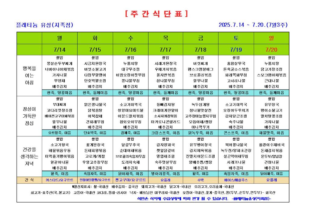 ♡ 2025년 7월 3주 식단안내(7월14일~7월20일) 관리자 2025-07-10 14:58 ♡ 2025년 7월 3주 식단안내(7월14일~7월20일) 다음글 ♡ 2025년 7월 4주 식단안내(7월21일~7월27일) 이전글 ♡ 2025년 7월 2주 식단안내(7월7일~7월13일) 목록