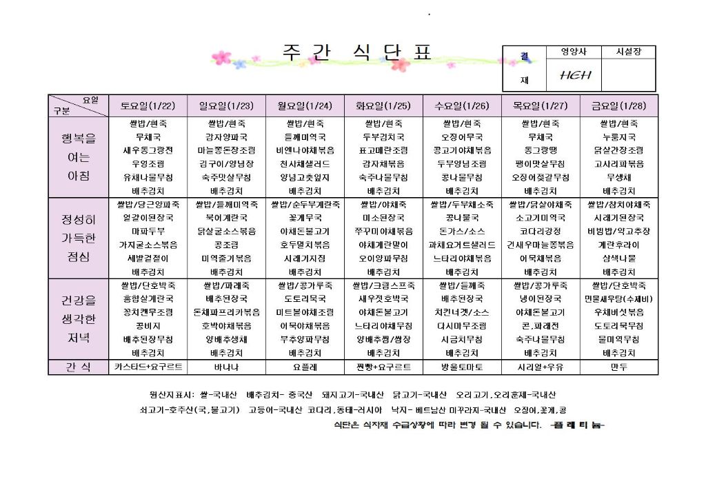 ♡ 2022년 1월 4주 식단안내(1월22일~1월28일) 최고관리자 2022-01-21 17:42 다음글 ♡ 2022년 2월 1주 식단안내(1월29일~2월4일) 이전글 ♡ 2022년 1월 3주 식단안내(1월15일~1월21일) 목록