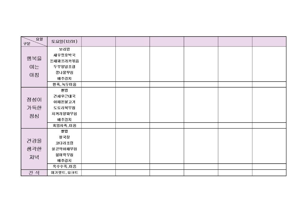 ♡ 2022년 12월 6주 식단안내(12월31일) 최고관리자 2022-12-30 08:31 다음글 ♡ 2023년 1월 1주 식단안내(1월1일~1월6일) 이전글 ♡ 2022년 12월 5주 식단안내(12월24일~12월30일) 목록