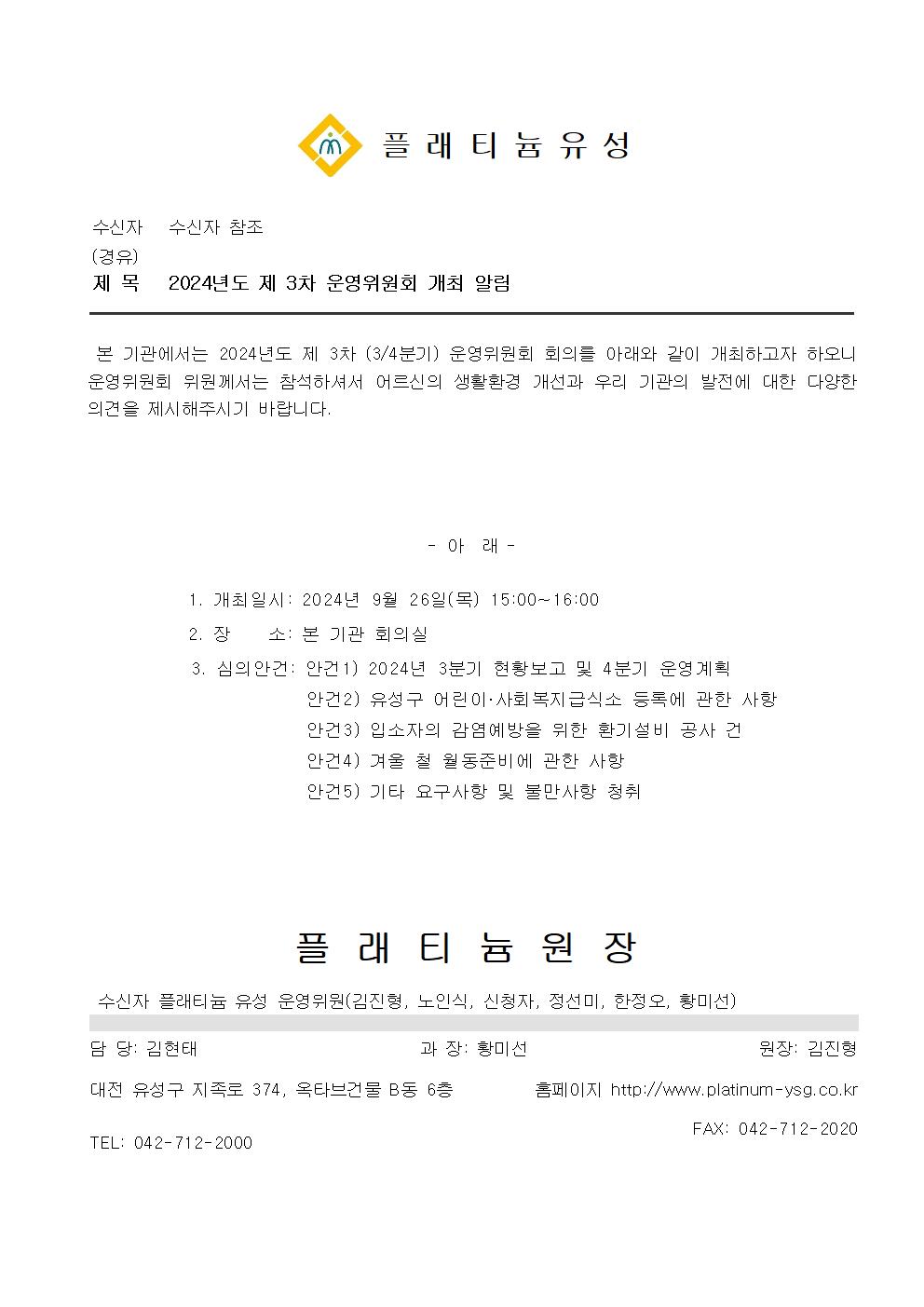 호텔급 요양시설 플래티늄 명성 그대로 -