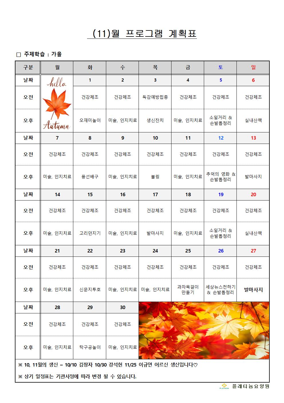 2022년 11월 프로그램계획표