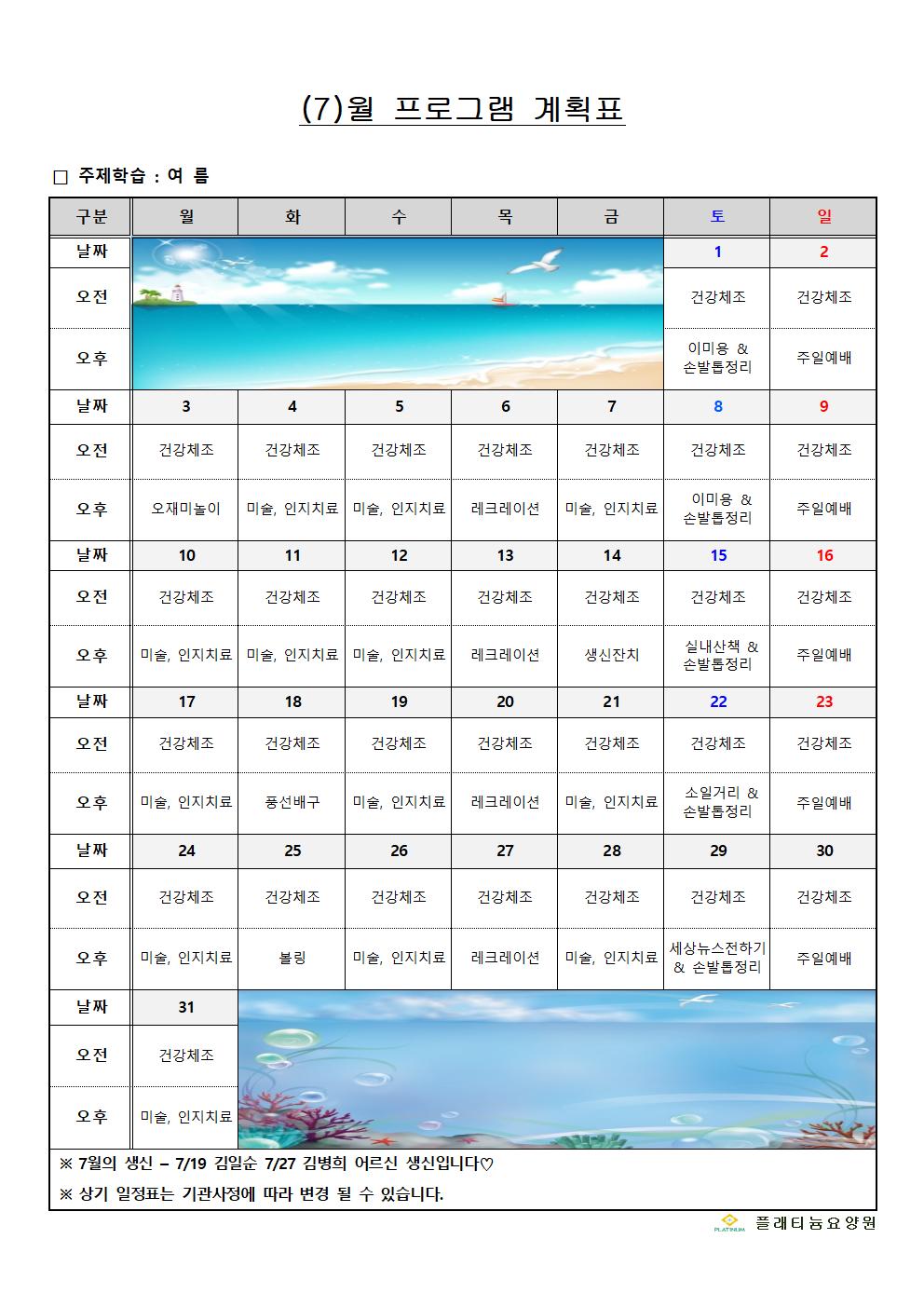 2023년 7월 프로그램계획표