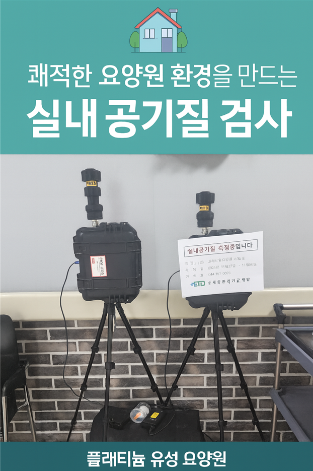 ♡ 2025년 실내공기질검사(11.27) 관리자 2025-12-02 10:04 안녕하세요. 플래티늄 유성 요양원입니다.어르신들의 건강을 지키는 데 있어 실내공기질 관리는 가장 기본이자 중요한 부분입니다.특히 장시간 실내에서생활하시는 요양원 환경에서는 미세먼지,이산화탄소, 곰팡이, 악취 등 공기질이 직접적으로건강에 영향을 줄 수 있기 때문에 정기적인 검사가 필수입니다.공기질 검사가 필요한 이유○ 호흡기 질환 예방○ 감염 및 바이러스 확산 최소화○ 어르신들의 불편감(냄새, 답답함 등) 감소○ 쾌적한 생활환경 조성○ 법적 기준에 맞는 시설 운영검사 대상 항목미세먼지,초미세먼지* 외부 공기 유입*청소 방식 등에서 발생* 기준치 초과 시 호흡기 질환 악화 가능이산화탄소* 환기 상태 확인 지표* 수치 상승 시 두통*피로감 증가폼알데하이드* 가구, 바닥재 등에서 방출되는 유해물질* 새 시설 또는 새 가구 도입 시 특히 중요총부유세균* 감염 위험성과 직결* 주간보호, 요양원에서 반드시 관리 필요온*습도* 곰팡이 발생 여부와 직접 연관* 어르신이 가장 쾌적함을 느끼는 기본 환경검사 방법○ 전문 공기질 측정기관 방문○ 측정기기를 이용해 실시간 값 수집○ 유해물질 시로 채취 후 분석이 필요한 항목은 실험실 분석○ 결과 보고서 제공개선 방법 (공기질 기준치를 초과할 경우)○ 환기 시스템 점검 및 강화○ 공기정화기(헤파필터) 보급 및 정기필터교체○ 정기적 창문 환기 시간 확보○ 청소 방식 개선(물걸레 청소 중심)○ 습도 조절(제습/가습)○ 곰팡이 발생 구역 즉시 제거*보수 " 플래티늄 유성 요양원에서는 어르신들의항상 쾌적한 환경에서 생활하실 수있도록 정기적인 공기질 검사를 실시하고 있으며,미세먼지 CO2, 세균 등 전항목에서 안전 기준을 유지하고 있습니다." 다음글 ♡ 2025년 12월 2주 식단안내(12월8일~12월14일) 이전글 ♡ 유성구 사회복지급식지원센터 연계 - 어르신 위생교육 실시(11.27) 목록