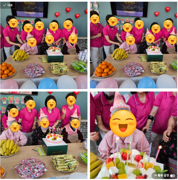 ♡ 2026년 1월 생신잔치 관리자 2026-01-09 10:16 🌸 플래티늄 유성 요양원 2026년 1월 생신잔치 🌸 새해의 따뜻한 기운이 가득한 1월,플래티늄 유성 요양원에서는 1월 생신을맞이하신 어르신들을 위한 생신잔치를진행하였습니다. 정성껏 준비한 생신 케이크와 과일,간식이 테이블을 가득 채우고어르신 한 분 한 분을 위한 축하의 마음을담아 모두가 함께 모였습니다.직원들은 하트 포즈로 사랑을 전하고,어르신들께서는 환한 미소로 화답해주셔서행사 내내 웃음과 따뜻함이 넘치는시간이 되었습니다. ♥️ " 축하해줘서 고마워요."라는 어르신들의 말씀에저희 직원들 또한 큰 보람과 감사함을느낄 수 있었습니다.플래티늄 유성 요양원은어르신 한 분 한 분의 소중한 하루와기억을 위해앞으로도 정성과 사랑을 다해함께 하겠습니다. 1월 생신을 맞이하신 어르신들.진심으로 생신을 축하드립니다.항상 건강하시고 행복한 날들만가득하시길 바랍니다. 감사합니다. 플래티늄 유성 요양원 임직원 일동 다음글 ♡ 인지미술활동-새해 리스 만들기 이전글 ♡ 여가활동 - 대형 윷놀이 목록