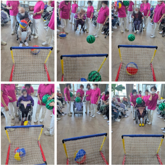 ♡ 여가활동프로그램 - 비치볼 축구 관리자 2026-02-04 10:45 여가활동 프로그램 - 비치볼 축구 ⚽어르신들과 함께한 오늘의 여가활동은모두가 웃음꽃을 피운 비치볼 축구활동이었습니다.가볍고 부드러운 비치볼을 사용해무릎이나 발로 천천히 공을 굴리며골대에 넣는 방식으로 진행해신체 부담은 줄이고 참여의 즐거움은높인 활동이었어요휠체어를 이용하시는 어르신들도자리에서 충분히 참여할 수 있도록직원들이 옆에서 안전하게 보조하며함께했습니다.공이 골대로 들어갈 때마다성취감을 느끼시는 어르신들의 모습에웃음과 박수가 자연스럽게 이어지며활기찬 분위기로 가득찼습니다.비치볼 축구활동은✔️ 하체 근력 강화✔️ 균형감각 유지✔️ 반응 속도 향상✔️ 사회적 교류 및 정서 안정에 도움을 주는 여가활동으로어르신들의 만족도가 특히 높은프로그램입니다.앞으로도 어르신 한 분 한 분의 신체상태를 고려한안전하고 즐거운 여가활동으로하루하루에 활력을 더해드리겠습니다. ♥️따뜻한 또 하나의 가족,플래티늄 유성 요양원은오늘도 어르신의 웃음을 가장 소중하게생각합니다. 다음글 ♥ 2026년 2월 직원회의 이전글 ♥ 2026년 (1)월 어르신 간식 선호도 조사 목록