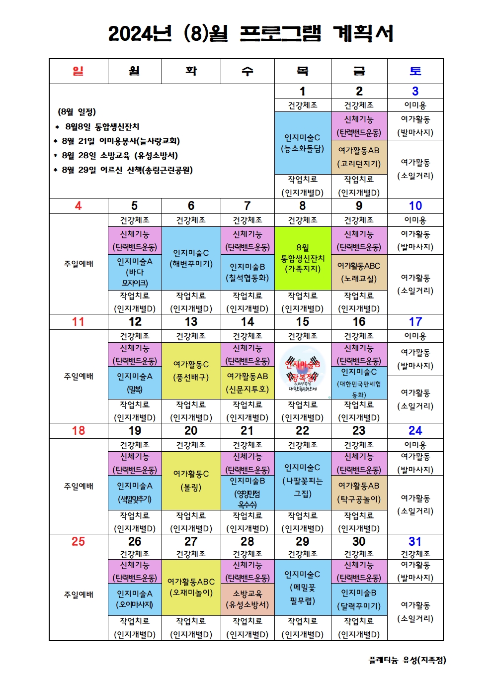 ♡ 2024년 8월 프로그램계획서 관리자 2025-04-15 14:50 ♡ 2024년 8월 프로그램계획서 다음글 ♡ 2024년 9월 프로그램계획서 이전글 ♡ 2024년 7월 프로그램계획서 목록