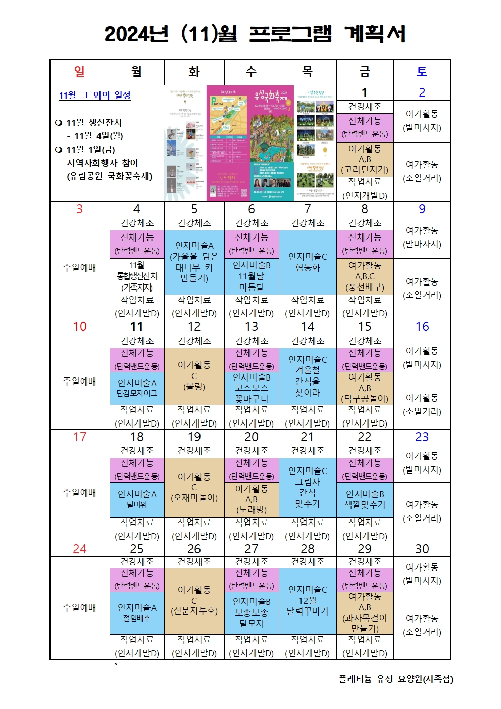 ♡ 2024년 11월 프로그램계획서 관리자 2025-04-15 14:51 ♡ 2024년 11월 프로그램계획서 다음글 ♡ 2024년 12월 프로그램계획서 이전글 ♡ 2024년 10월 프로그램계획서 목록