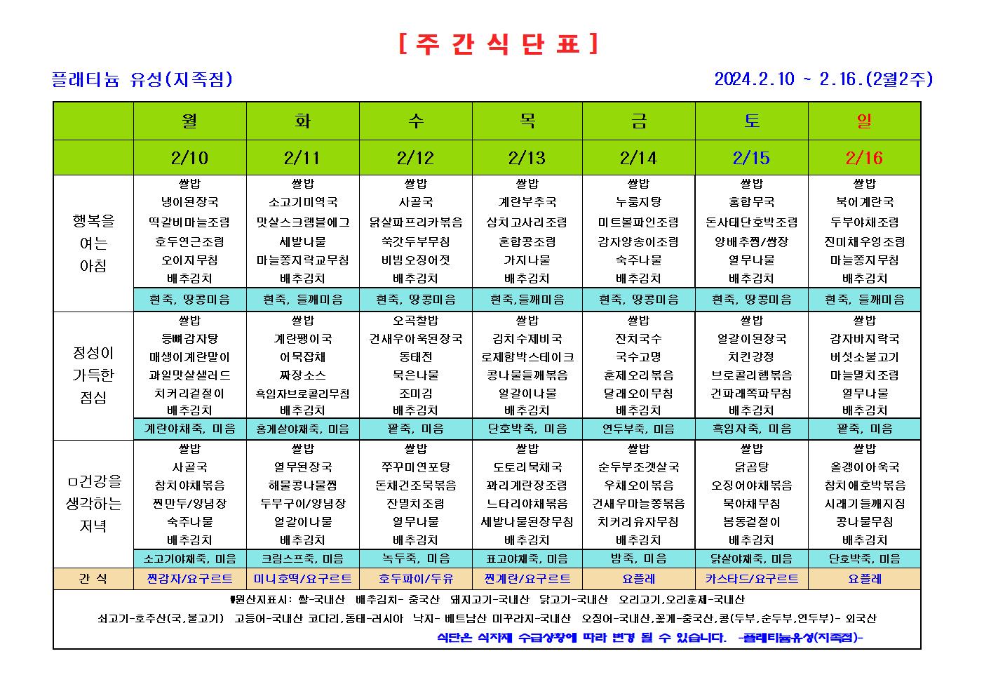 ♡ 2025년 2월 2주 식단안내 ( 2월 10일 ~ 2월 16일) 관리자 2025-04-18 14:05 ♡ 2025년 2월 2주 식단안내 ( 2월 10일 ~ 2월 16일) 다음글 ♡ 2025년 2월 3주 식단안내 ( 2월 17일 ~ 2월 23일) 이전글 ♡ 2025년 2월 1주 식단안내 ( 2월 3일 ~ 2월 9일) 목록