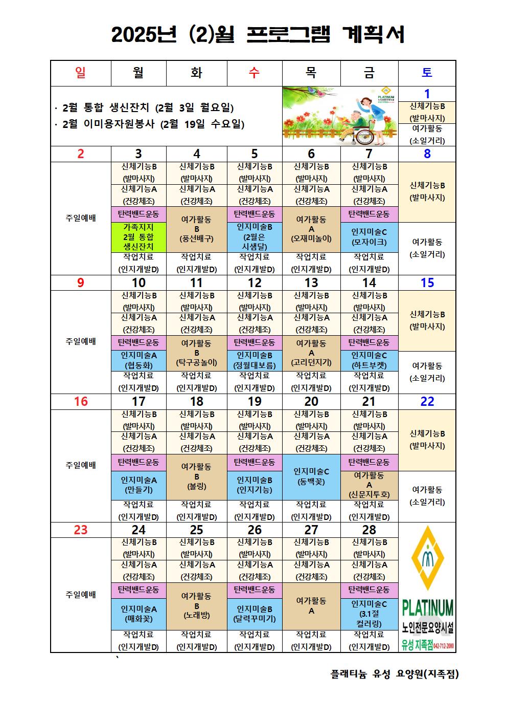♡ 2025년 2월 프로그램안내 관리자 2025-04-18 14:12 ♡ 2025년 2월 프로그램 안내 다음글 ♡ 2025년 3월 1주 식단안내(3월3일~3월9일) 이전글 ♡ 2025년 2월 가정통신문 목록