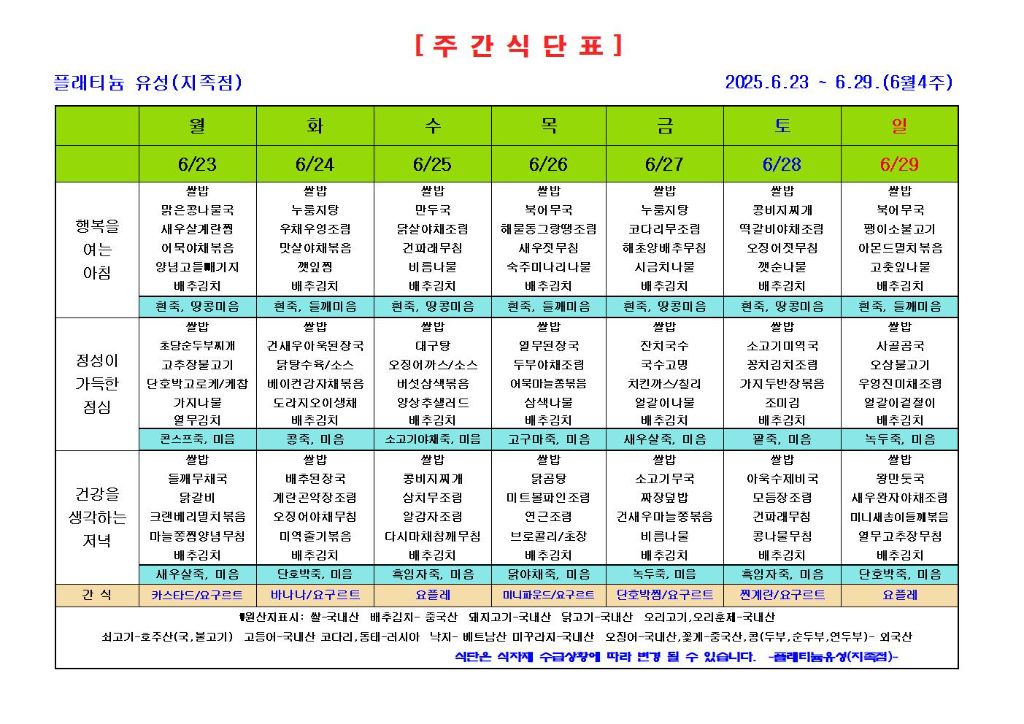 ♡ 2025년 6월 4주 식단안내(6월23일~6월29일) 관리자 2025-06-19 08:54 ♡ 2025년 6월 4주 식단안내(6월23일~6월29일) 다음글 ♡ 2025년 7월 1주 식단안내(6월30일~7월1일) 이전글 ♡ 2025년 6월 3주 식단안내(6월16일~6월22일) 목록
