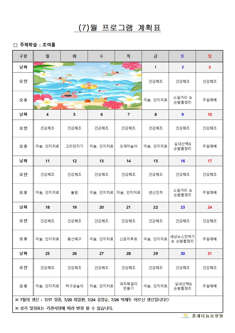 2022년 07월 프로그램계획표