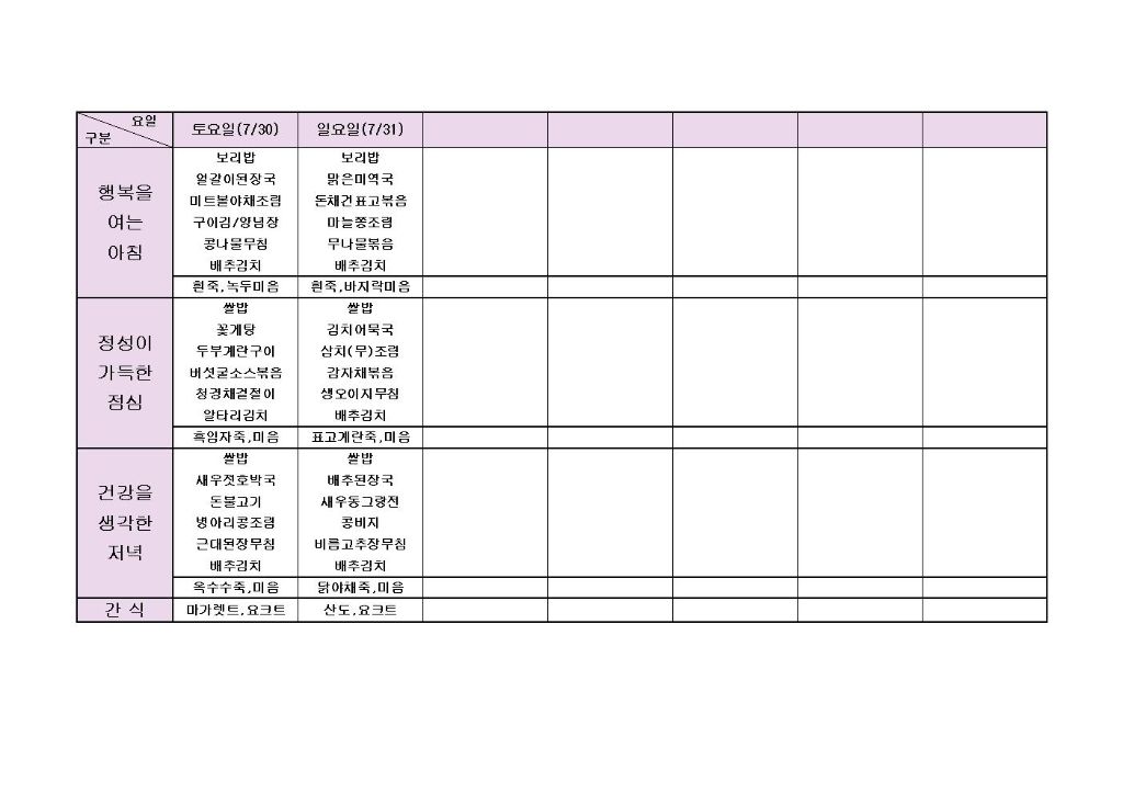 ♡ 2022년 7월 5주 식단안내(7월30일~7월31일) 최고관리자 2022-07-29 16:06 다음글 ♡ 2022년 8월 1주 식단안내(8월1일~8월5일) 이전글 ♡ 2022년 7월 4주 식단안내(7월23일~7월29일) 목록