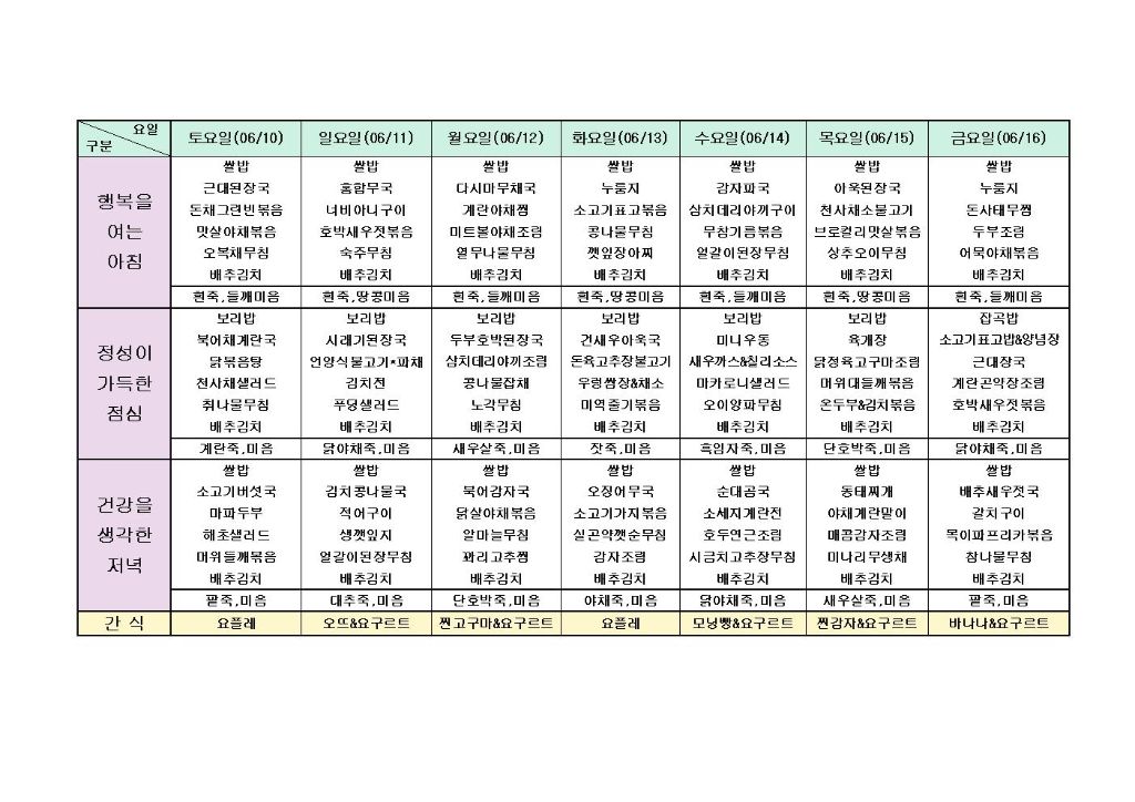 ♡ 2023년 6월 3주 식단안내(6월10일~6월16일) 최고관리자 2023-06-09 12:58 다음글 ♡ 2023년 6월 4주 식단안내(6월17일~6월23일) 이전글 ♡ 2023년 6월 2주 식단안내(6월3일~6월9일) 목록