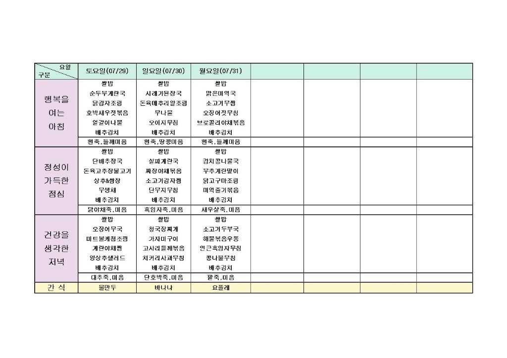 ♡ 2023년 7월 5주 식단안내(7월29일~7월31일) 최고관리자 2023-07-28 13:25 다음글 ♡ 2023년 8월 1주 식단안내(8월1일~8월4일) 이전글 ♡ 2023년 7월 4주 식단안내(7월22일~7월28일) 목록