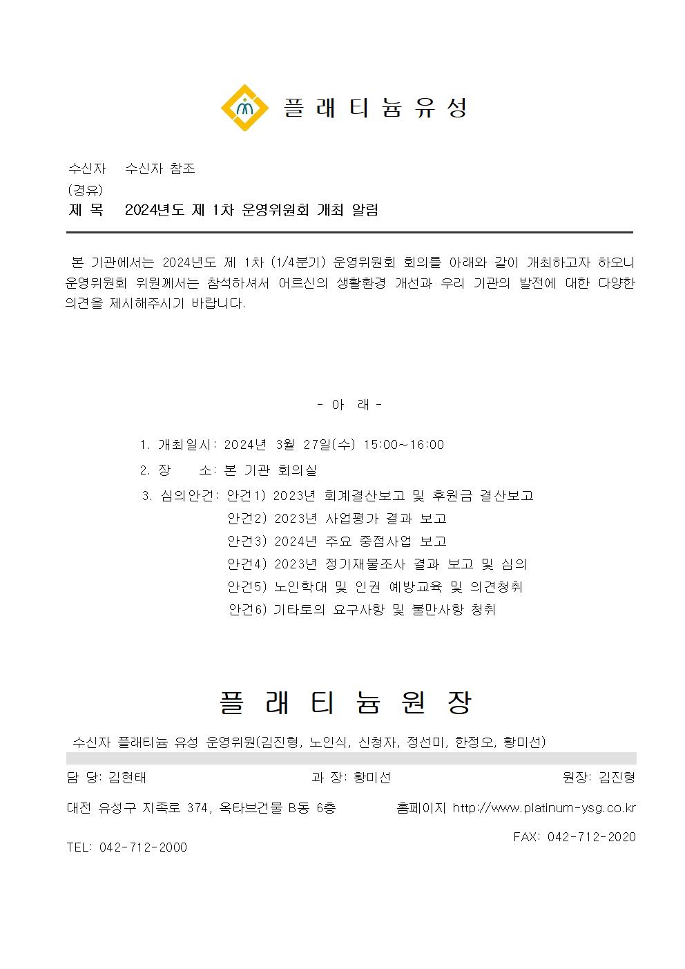 2024년도 제1차 운영위원회 개최알림