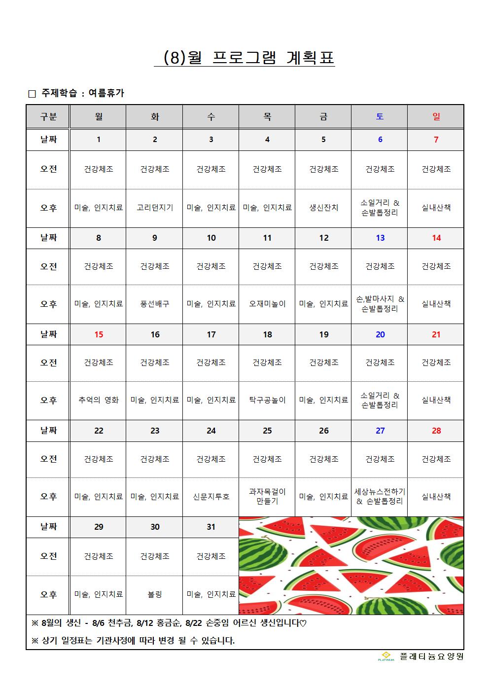 2022년 08월 프로그램계획표