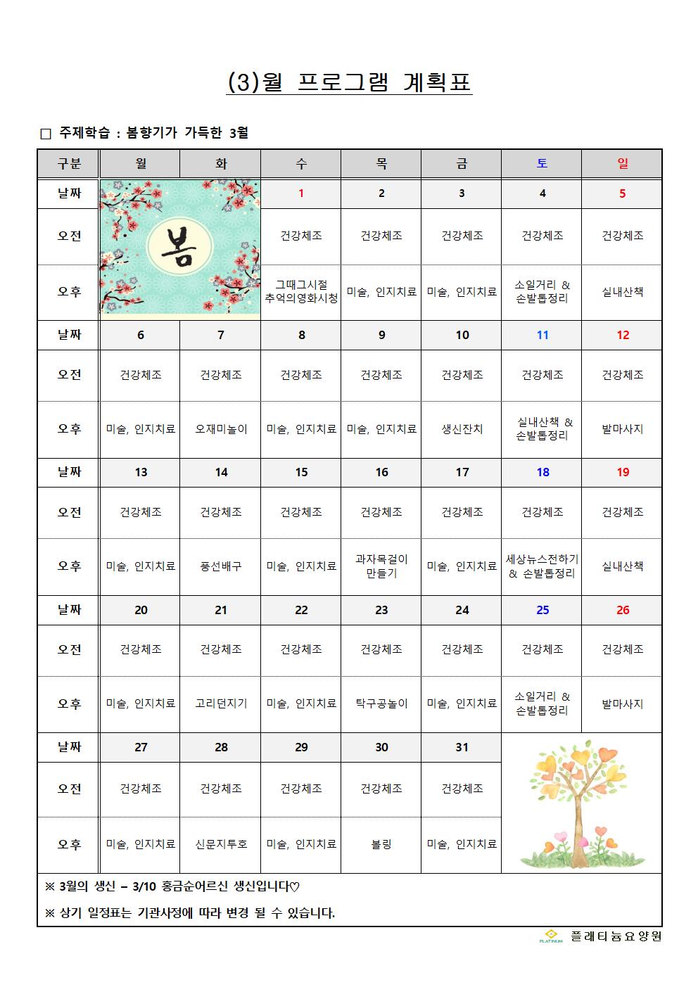 2023년 3월 프로그램계획표