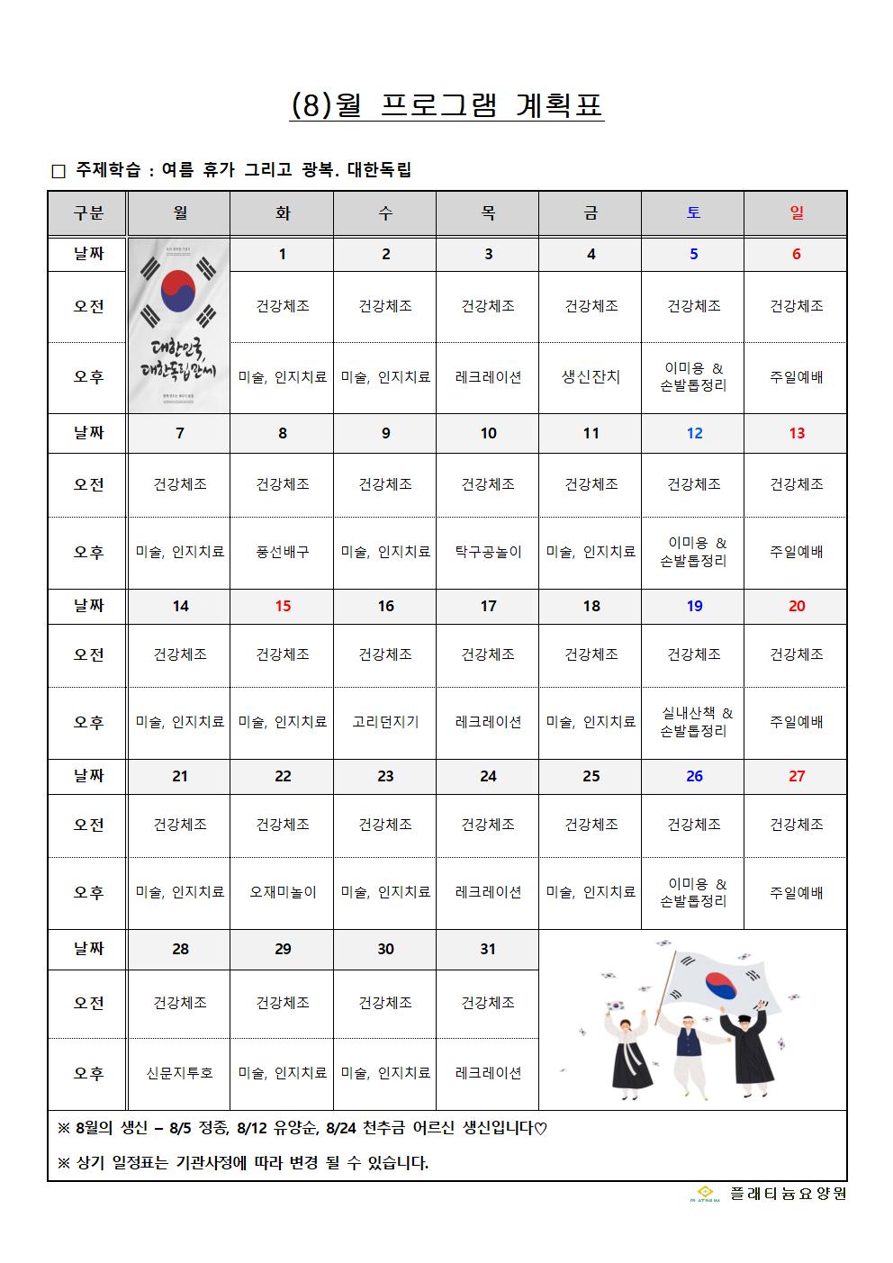 2023년 8월 프로그램계획표